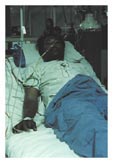 Tun Tun, a student rebel, was hit in the stomach by shrapnel from an 81-mm shell as the KNU's 3rd Division was forced out of Sekhen Thit. Htoo R lay one row over, with blood seeping from his heavily bandaged foot. He's a Karen who has been fighting since 1988, when he was 18. Neither one had a lot to say to the foreigner, but M, a member of the same student group as Tun Tun, wanted me to take pictures. The Burmese discreetly formed a wall to block the Thai nurses from seeing the camera.