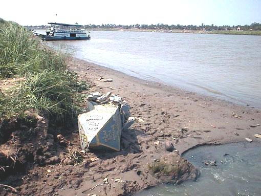 The police could have removed the stupa and just disappeared it, but that would not have shown enough contempt. It seems they know the people already hate them, so their only choice is the show the people that there is no bottom to their evil. Meanwhile the mayor says he doesn't know who put it there, and the police chief says that police only provided security for whoever did it. Similar to the grenade attack itself. And there the stupa sits, in the mud, with three policemen stationed on the bank above, with the stinking miasma of sewage all around it, with the names of the brave dead in gold letters now chipped and dirtied, reminding all who pass that the people who run this country, led by Hun Sen, say that if you die for freedom they will even shit on your memory.