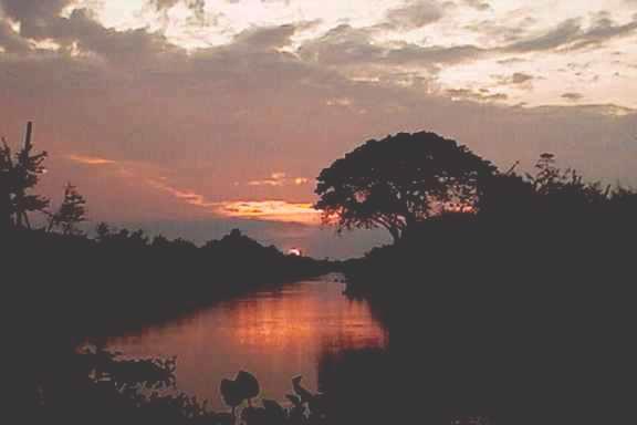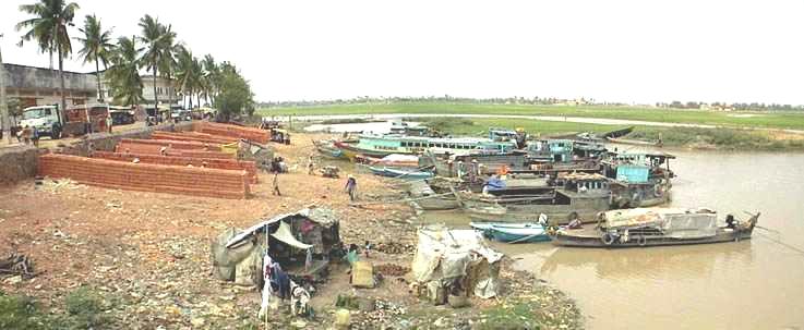 A day in the countrysideThe North Star is buried on the horizon beyond the distant dark line of trees that edge a vast plain of rice fields, on the powder-mud bank of a long canal that leads from the provincial town of Takeo to the ruined 8th-century temple at Phnom Da. The rice fields are brilliantly green in daylight, invisible at night. The lights of Takeo glow feebly in the distance, but they are miles away. Our speed-boat drivers are negotiating with a boat-dwelling couple who were rash enough to string their net all the way across the channel on a moonless night.My friendBeth and I drove to Takeo early this afternoon, bumping down Route 2 in a wheezing, chocolate-brown diesel Mercedes of early 1980s Communist-era vintage, loaned by her mechanic after the chassis of the old Renault disintegrated. A southern province of rich rice paddies, which straddles a major smuggling route with Vietnam, only a few dozen kilometers away by water, Takeo should be able to maintain a bustling capital.