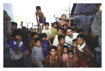 FITTING RIGHT IN (January 1996) - There's me among these typically frolicsome youngsters onthe grounds of a temple in Kompong Chhnang.