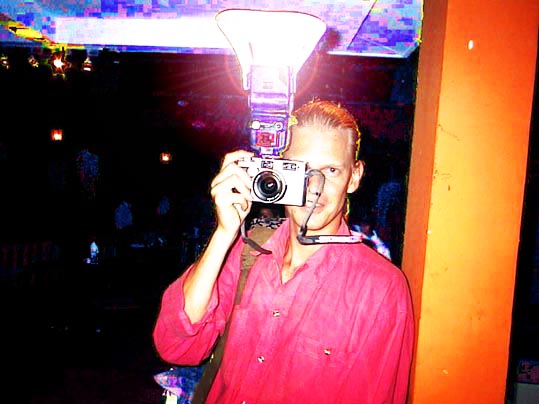 Starting from Joe's going-away party on the FCCC roof, Bun-Ang and Mark colloquize, but Sam-an is beyond words. Hak considers the future of Cambodia, while George holds forth and Ann makes love to the camera. Sinith ends up on the other end of the lens, Jeff has had enough already, and Paul and Lina make cute together. Downstairs, we see the Dutchman with the tool of his trade and Gregoire of the Soir. Beth takes on the masked man, who seeks respite with the Dutchman. Alejandra and Eric are just getting going, and Ian and Arjan heat up the stage while Caroline fixes Joe's face before his final Hey, Joe. John's looking good, but it would take more than beer goggles to deal with this. Alejandra, Eric and some guy get ready for the Magic Circus. A motodop lurks outside the Heart, but most everybody has gone elsewhere, some farther than others. That's what I mean about the curse of the digital camera.